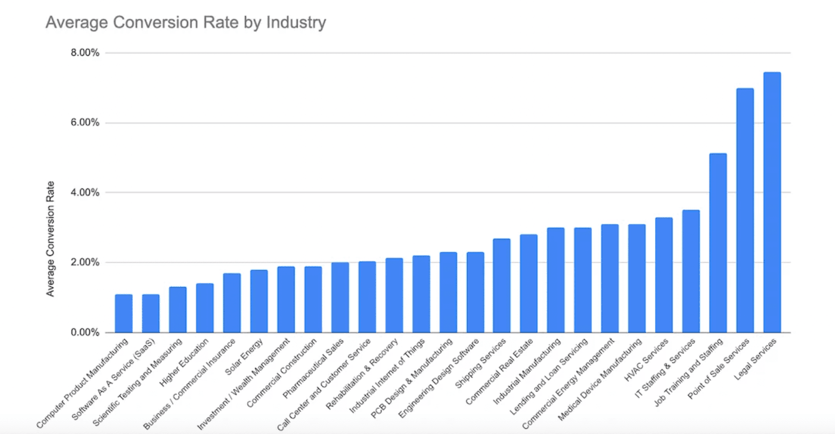 According to First Page Sage, the average conversion rate for a website in the SaaS industry is a mere 1.1%. That’s lower than expected but it’s not too surprising because most websites attract so many visitors that their conversion rates will always be watered down...right?