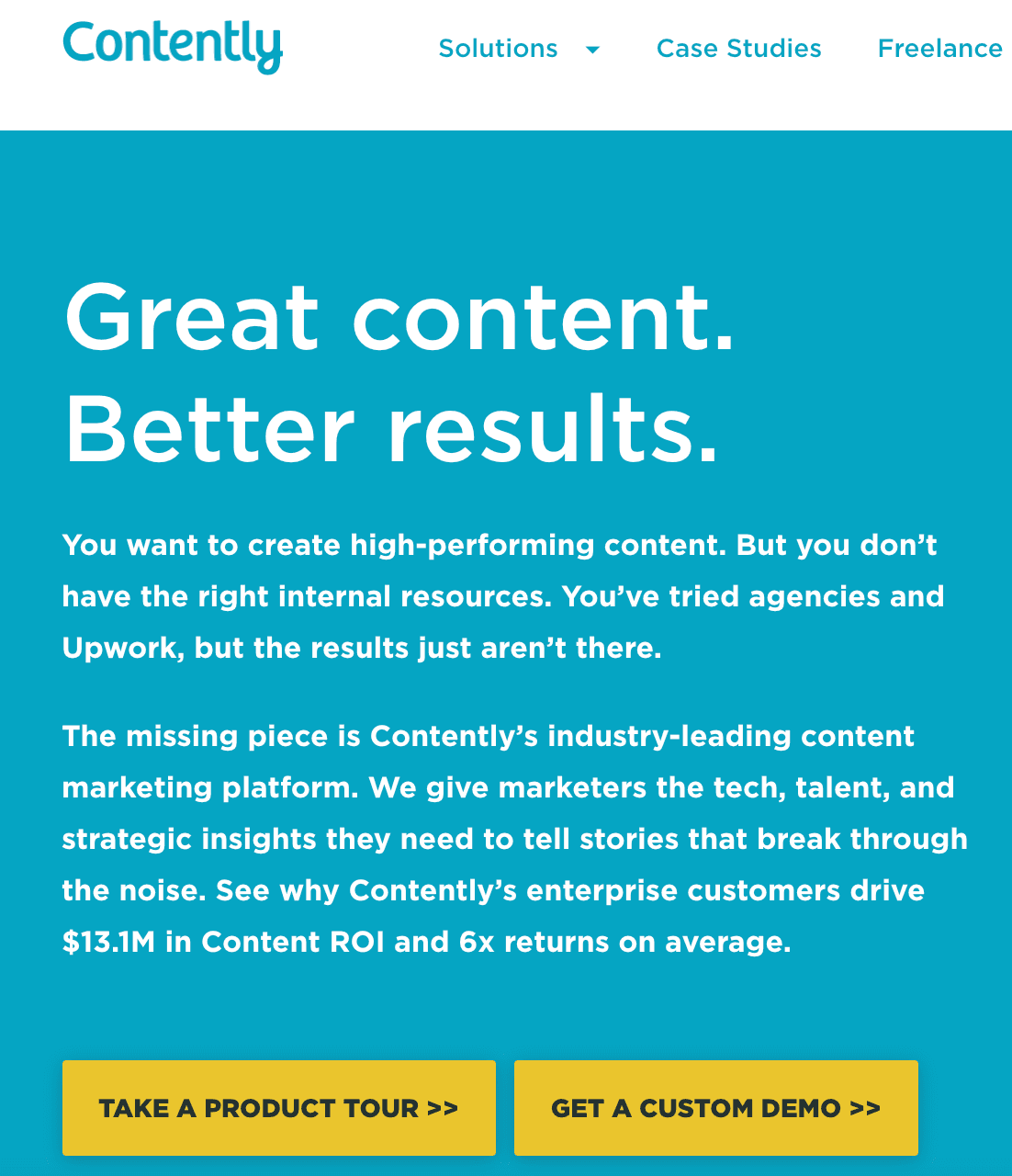 For instance, in the content marketing and freelance marketplace platform space, Contently and Skyword are usually duking it out for the first place. However, one of the many reasons why Contently always seems to come out on top is because they’ve nailed their messaging, while Skyword still has some work to do.